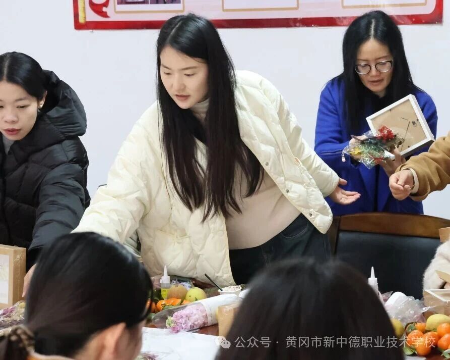 平日里握惯了粉笔、敲惯了键盘的双手,此刻拿起工具,竟也多了一份灵巧与温柔。现场欢声笑语不断,姐妹们或埋头专注,或互相请教,气氛温馨而热烈。