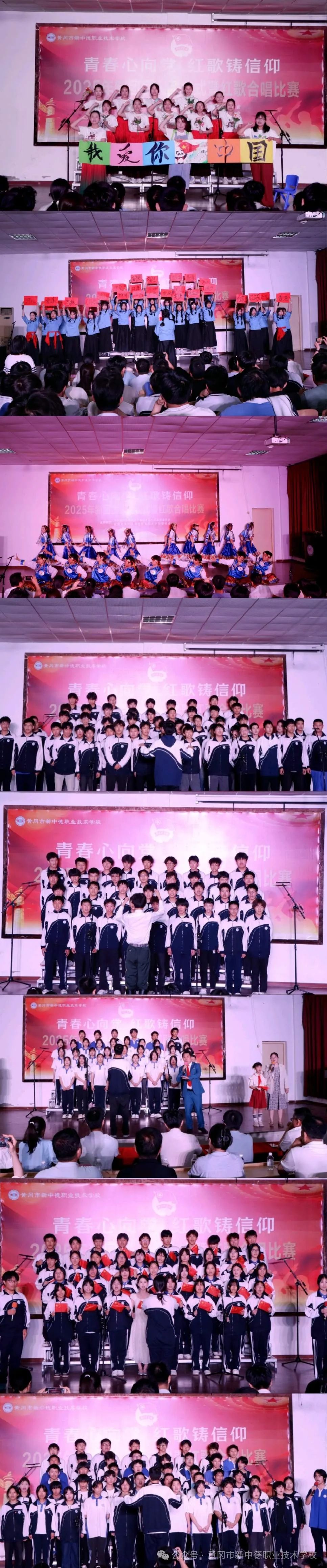 为了弘扬爱国主义精神,激发学生的爱国热情,丰富校园文化生活。5月16日晚,黄冈市新中德职业技术学校举行2025年新团员入团仪式暨红歌合唱比赛,常务副校长乔良群、德育副校长郭春峰等校领导出席本次比赛。