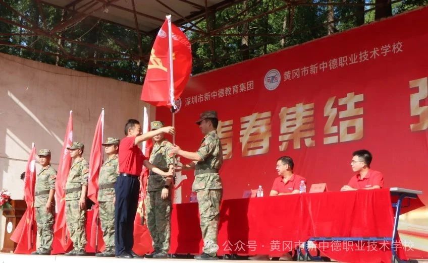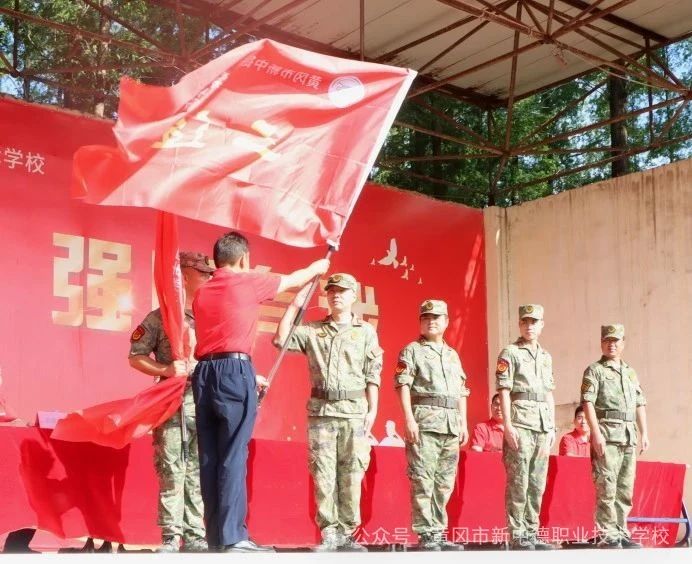 在激昂的进行曲中,张校长向军训连授予“军训连旗”。鲜红的旗帜迎风飘扬,接过的是荣誉,扛起的是责任,标志着2025级新生军训连正式成立。