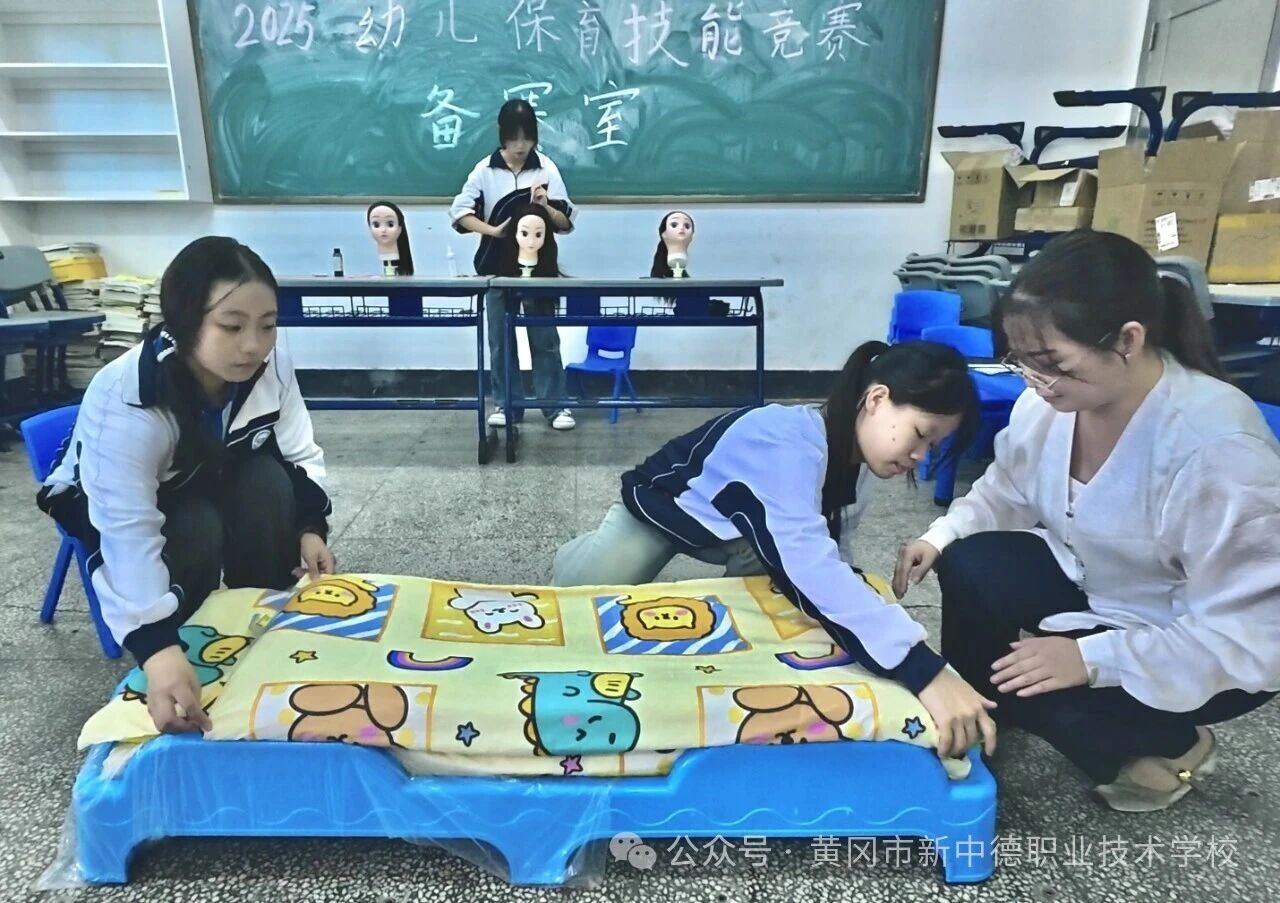 每天上午的大课间,幼师专业的训练室里早已活跃着选手们忙碌的身影。她们正在进行婴幼儿日常生活照料项目的训练,各种专业手法熟练摆正操作台上的各种育儿用品,空气中弥漫着认真与专注的气息。