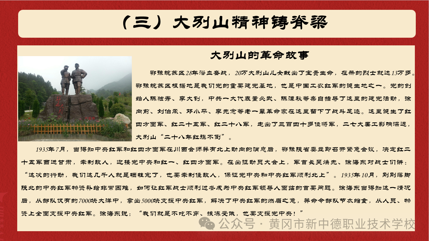 大别山精神——在宋院长的带领下我们回溯了革命战争年代的那段峥嵘岁月。他着重阐释了“28年红旗不倒”背后所蕴含的坚定理想信念和无私奉献精神。他强调,这是融入黄冈血脉的宝贵财富,作为新时代的教育工作者,必须传承好这份红色基因,将其内化为坚守教育报国初心、勇担立德树人使命的坚定信仰和不竭动力。