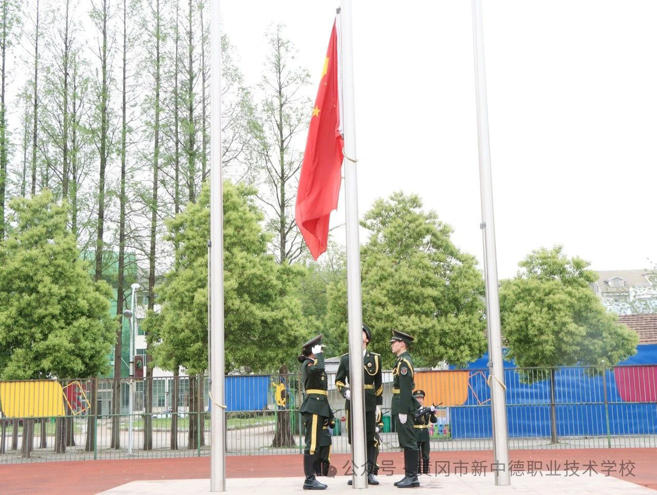 4月7日上午,黄冈市新中德职业技术学校举行“缅怀革命先烈,传承爱国情怀”主题教育思政升旗仪式。