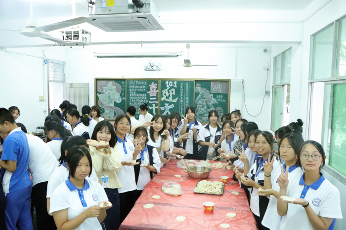 几十载风风雨雨,几十载历尽沧桑,几十载励精图治,几十载灿烂辉煌,换来了祖国繁荣昌盛,换来了国泰民安。吾辈何其荣幸,得炎黄之名,新时代中依靠在祖国母亲的臂弯,在疫情肆虐的当下,我们仍能幸福安康,其乐融融地进行包饺子活动,这就是“中国力量“,这就是”中国安全感“!在此我校全体师生也祝愿祖国母亲能早日清除“疫”这个顽瘴痼疾!