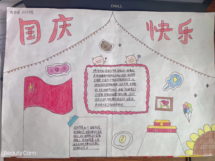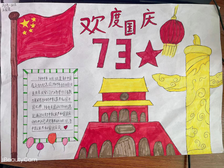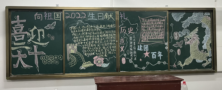 一张张漂亮的手抄报、一幅幅多彩的黑板报,既严肃又活泼,既充满敬意又展现时代风采。七十余载时光,通过我们的笔勾勒出来,其间所传承的爱国主义精神也随着笔锋流转于我们内心,那股温热,一生都难以消退。