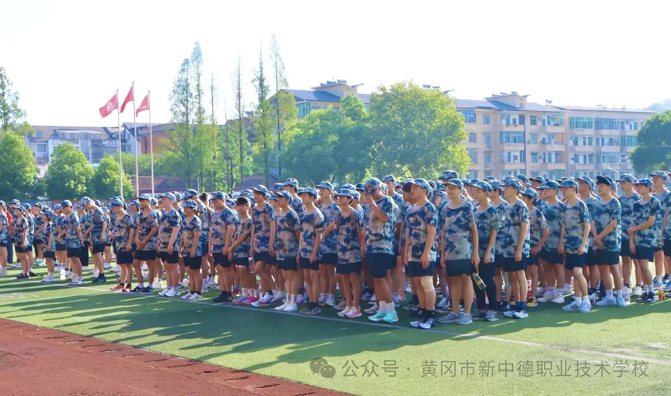 夏末秋初,天高云淡。8月24日上午,我校2025级新生军训开营仪式在学校操场隆重举行。一群朝气蓬勃的少年,身着整齐的迷彩服,怀揣着憧憬与决心,迎来了新中德职校生涯的“第一课”——军训。