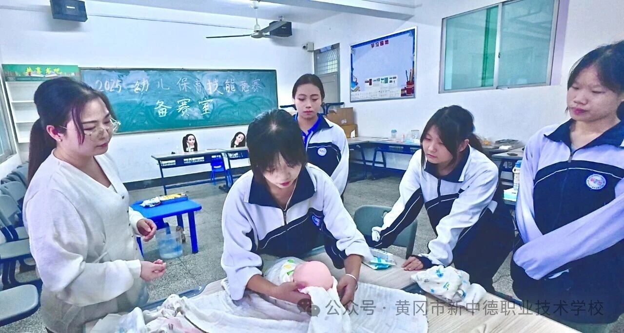 每天上午的大课间,幼师专业的训练室里早已活跃着选手们忙碌的身影。她们正在进行婴幼儿日常生活照料项目的训练,各种专业手法熟练摆正操作台上的各种育儿用品,空气中弥漫着认真与专注的气息。