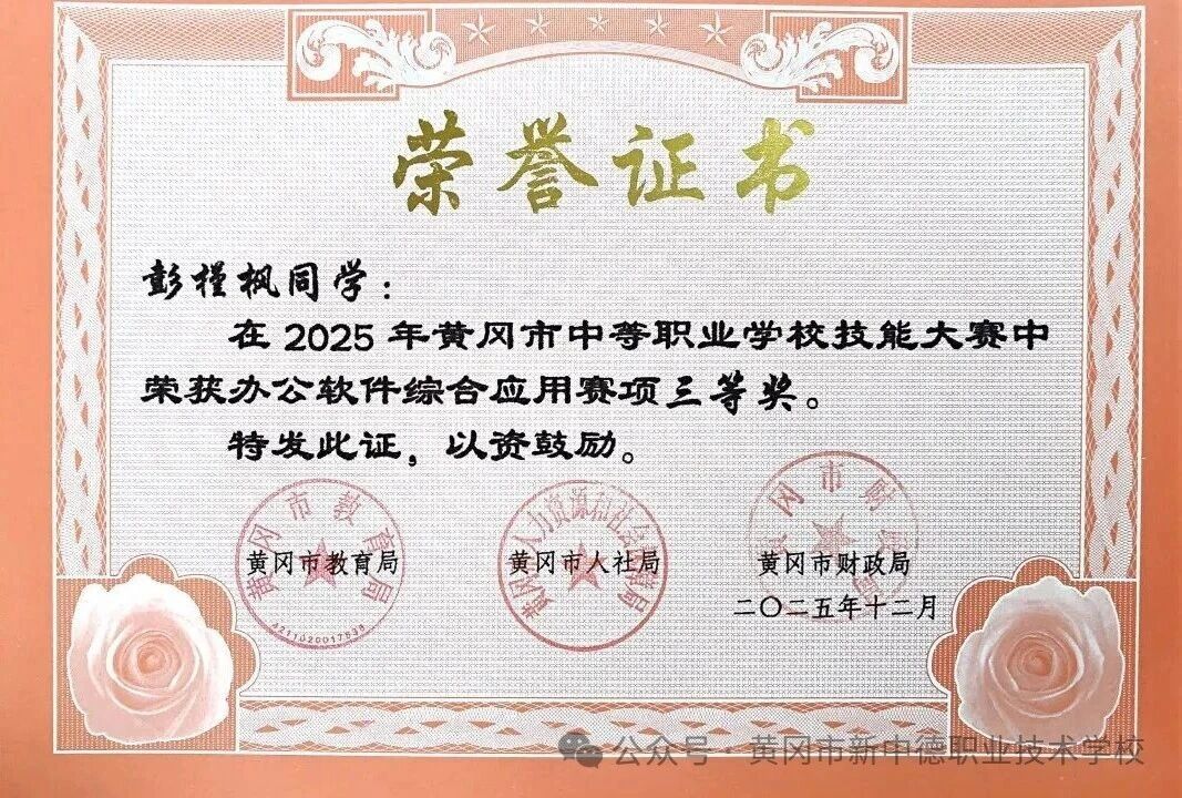 办公软件综合应用赛项:彭槿枫同学荣获 三等奖!